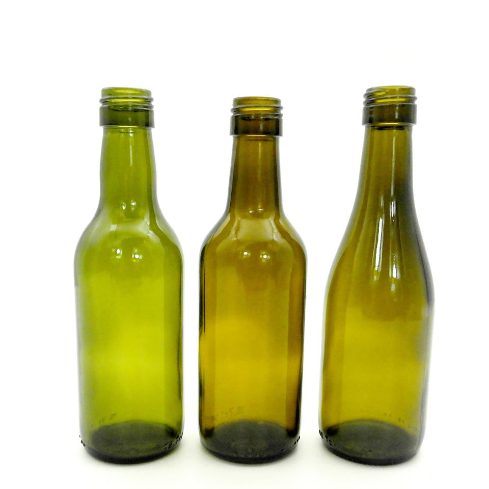 Factory Wholesale 187ml Antique Green Wine Glass Bottle Bordeaux Burgundy Bottles with Aluminum Caps