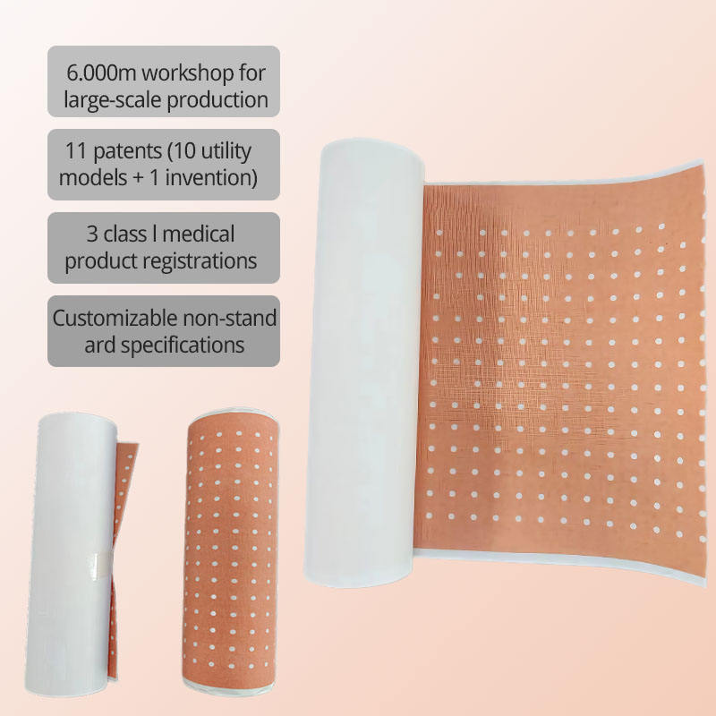 Commercio all'ingrosso della fabbrica 18cm x 5m colore della pelle di primo soccorso intonaco adesivo perforato intonaco per medico