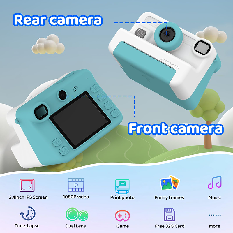Fotocamera Digitale per Bambini con Stampa Istantanea, Schermo da 2,4 Pollici, 720P, 32GB, Vendita all'Ingrosso
