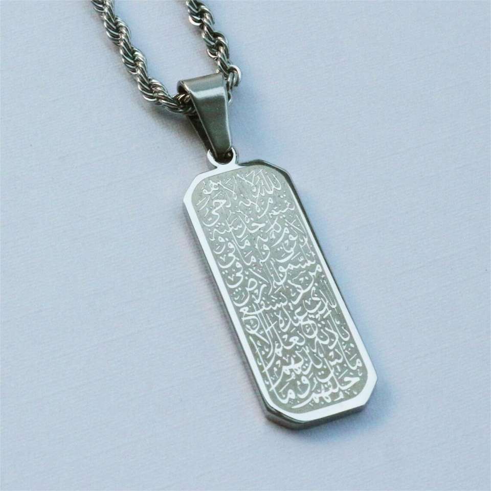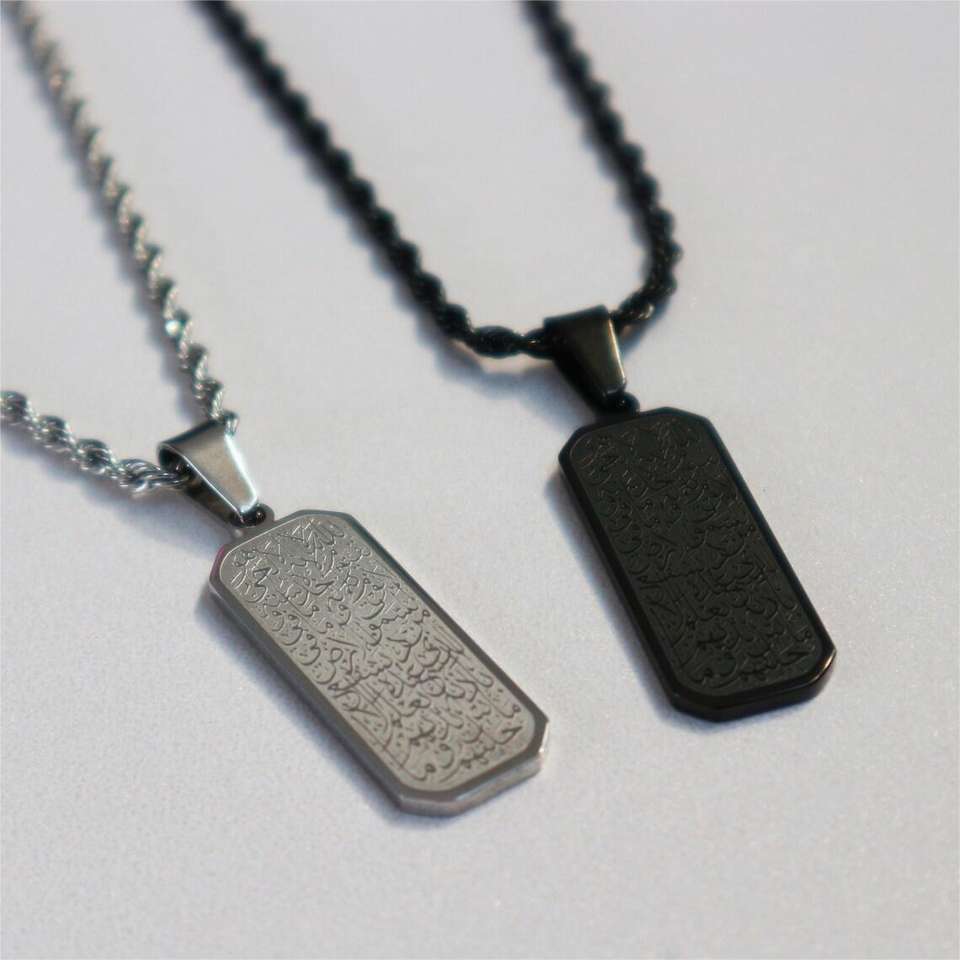 Collana con ciondolo calligrafia araba all'ingrosso della fabbrica, versetto del corano per la protezione, collana islamica di moda