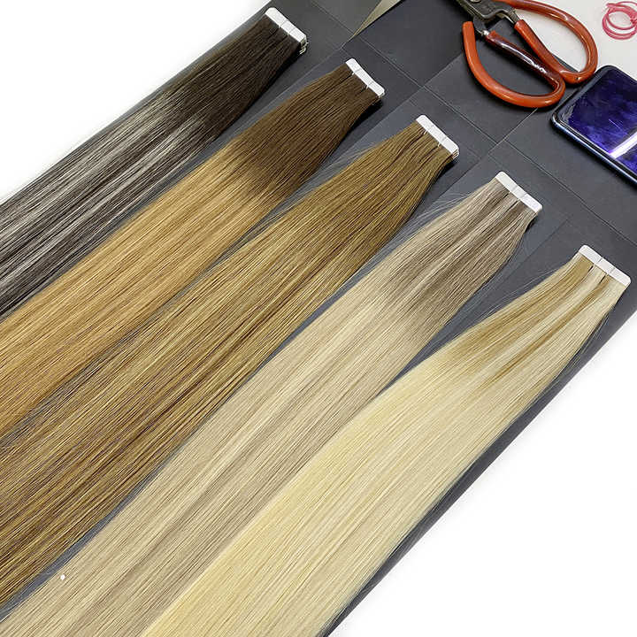 Commercio All'ingrosso della fabbrica Balayage Colore Private Label Nastro Europeo Nelle Estensioni Dei Capelli Umani di Remy di Estensioni Dei Capelli