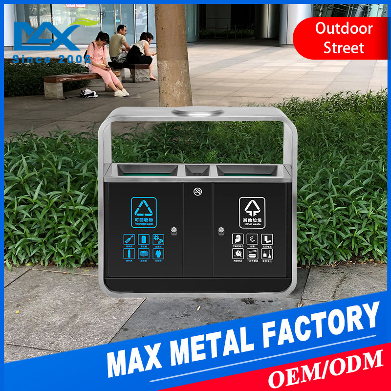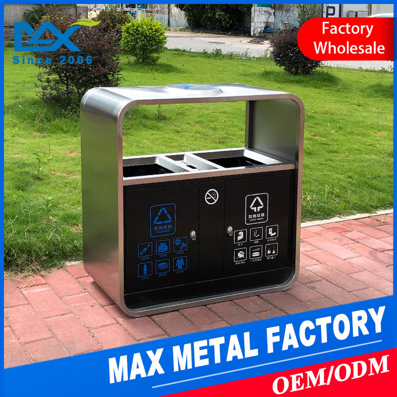 Factory Wholesale City Street Advertising Stainless Steel Metal Dustbin Outdoor Recycle Litter Waste Garbage Bin Trash Can