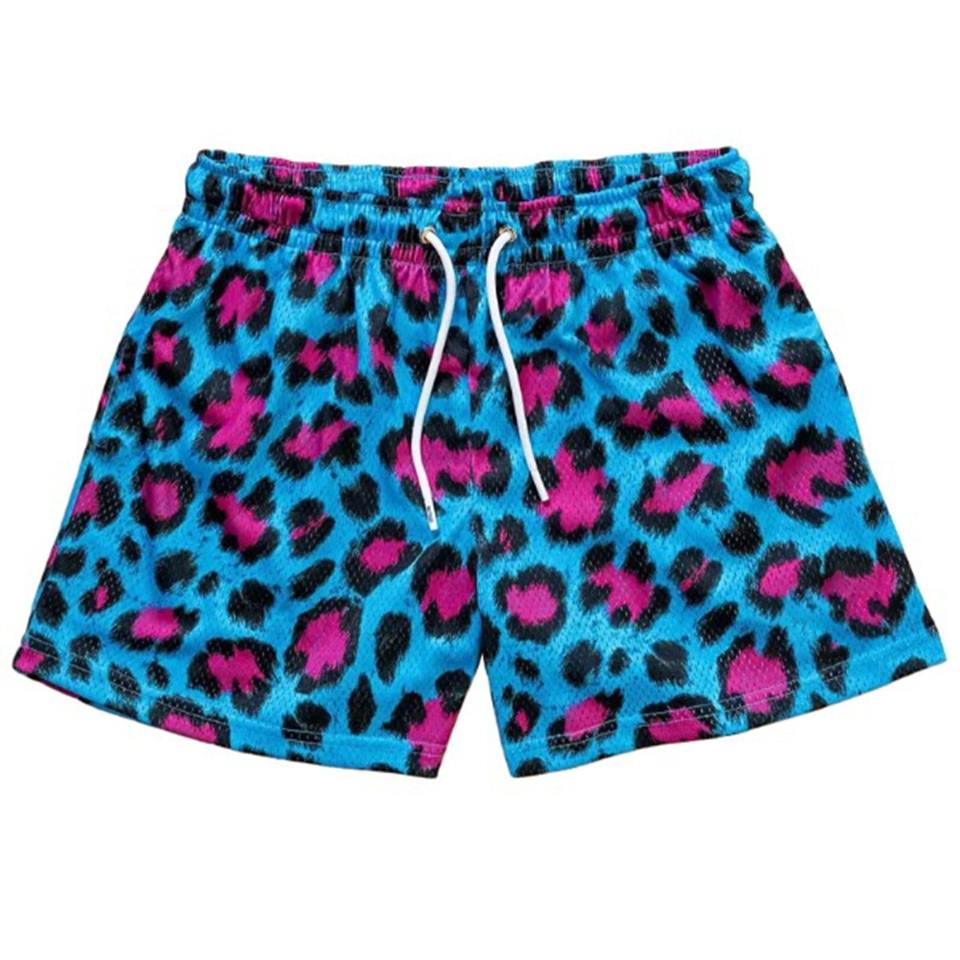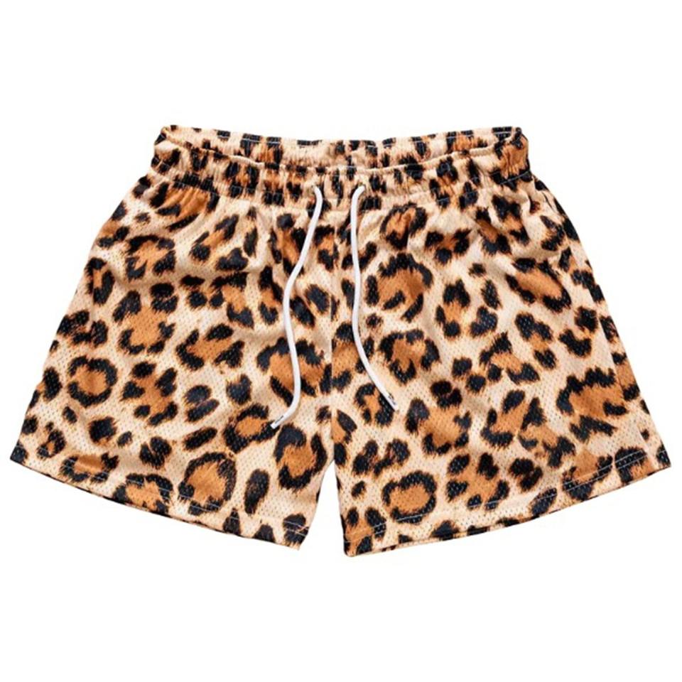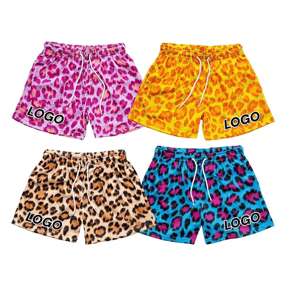 All'ingrosso della fabbrica Comfort Fit al ginocchio pantaloncini estivi da spiaggia per gli uomini sublimata stampa leopardata maglia lino Fitness pantaloncini sportivi