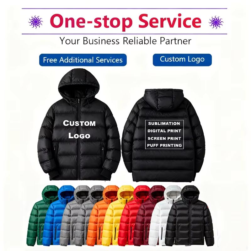 Cappotto Invernale Corto da Uomo di Lusso in Piuma d'Oca Nera con Cappuccio, Impermeabile, con Cerniera, Design Esclusivo, Alta Qualità, Vendita all'Ingrosso Diretta dalla Fabbrica