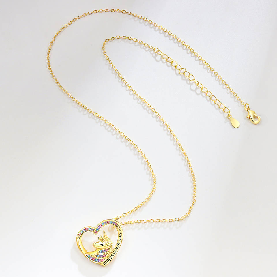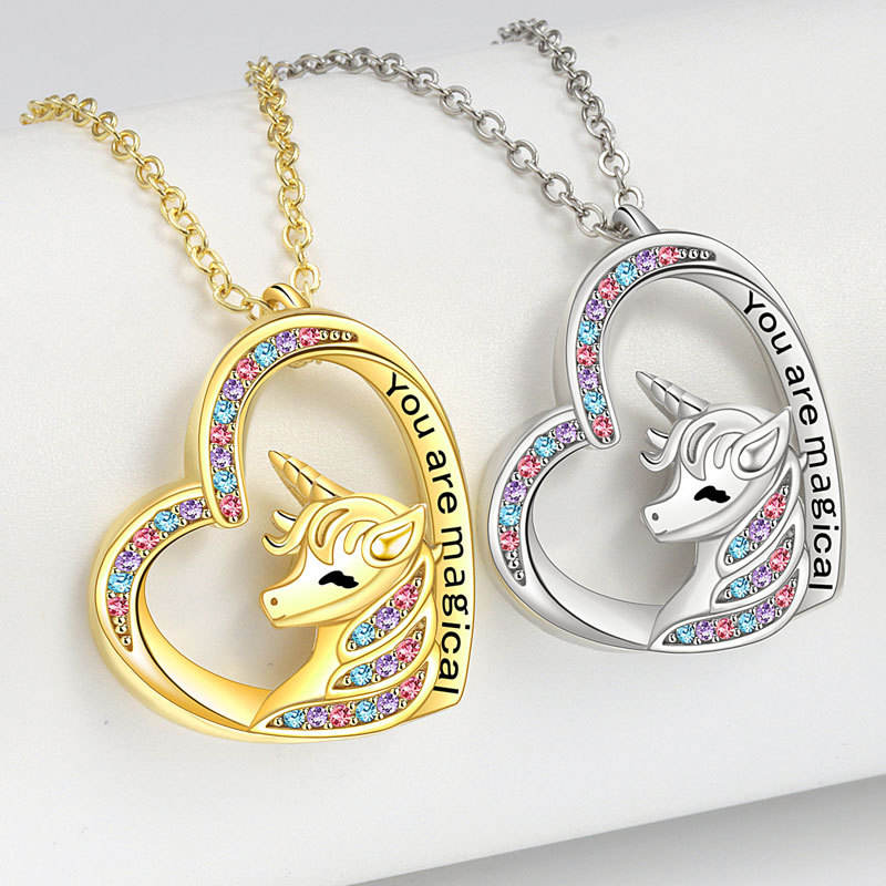 Collana in Rame Placcato Oro per Bambini, Ciondolo a Forma di Unicorno Colorato con Cuore, Gioielli all'Ingrosso