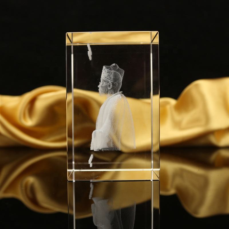 Product:human image 3d laser engraved crystal material glass cube for souvenir