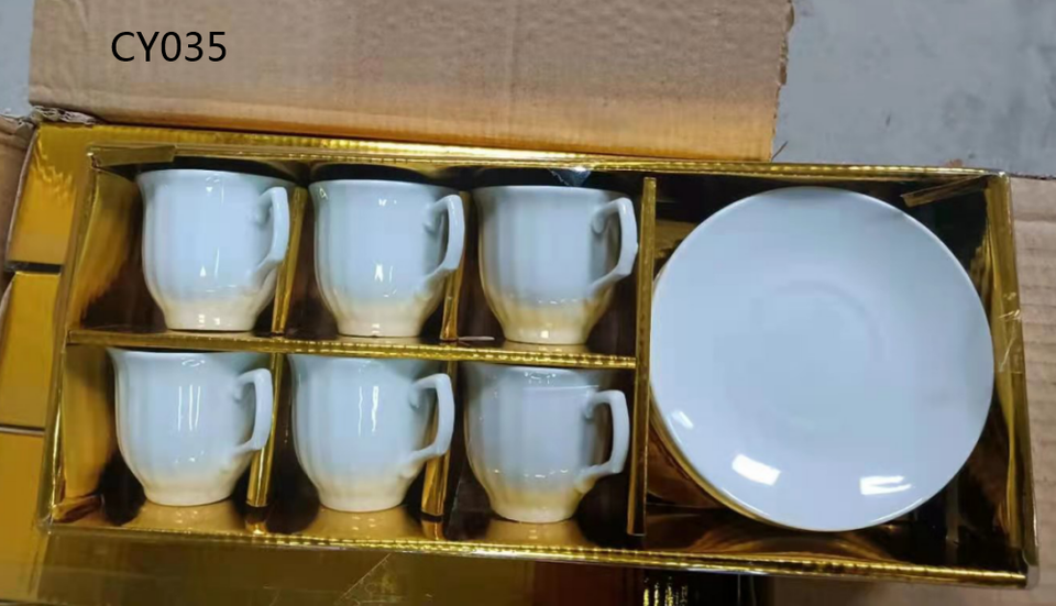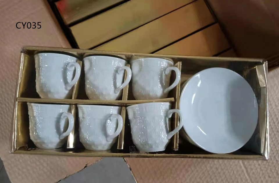 Sanbo Ceramics 12 pezzi tazzine da caffè con piattini 90 ml in porcellana bianca (new bone china) per ristorante/hotel/casa