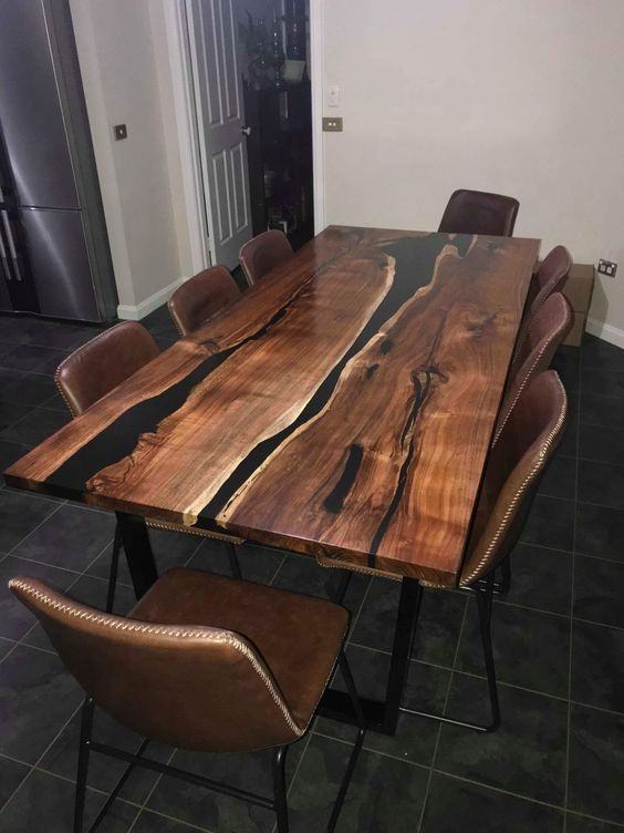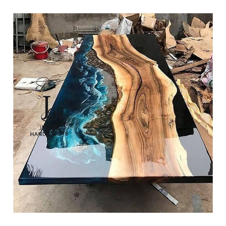 Finitura in resina epossidica: La finitura in resina epossidica aumenta la durata e il fascino estetico del tavolo, rendendolo resistente agli graffi e facile da mantenere.