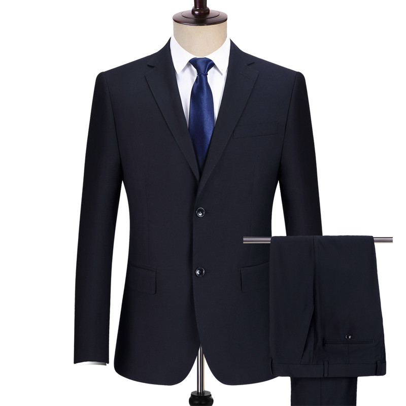 Abiti Formali da Uomo Stile Britannico, Lunghezza Regolare, Alta Qualità, Tessuto in Lana Pettinata Nera 100% Poliestere, Vendita all'Ingrosso
