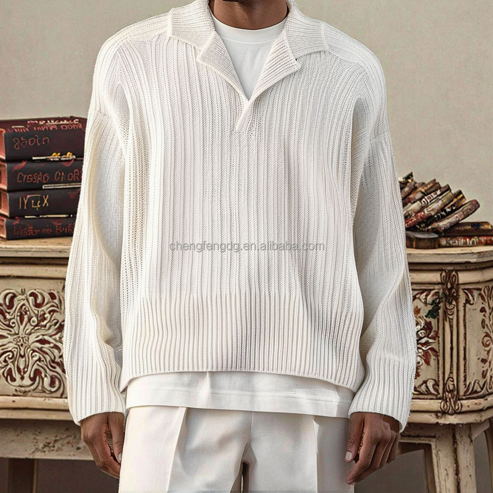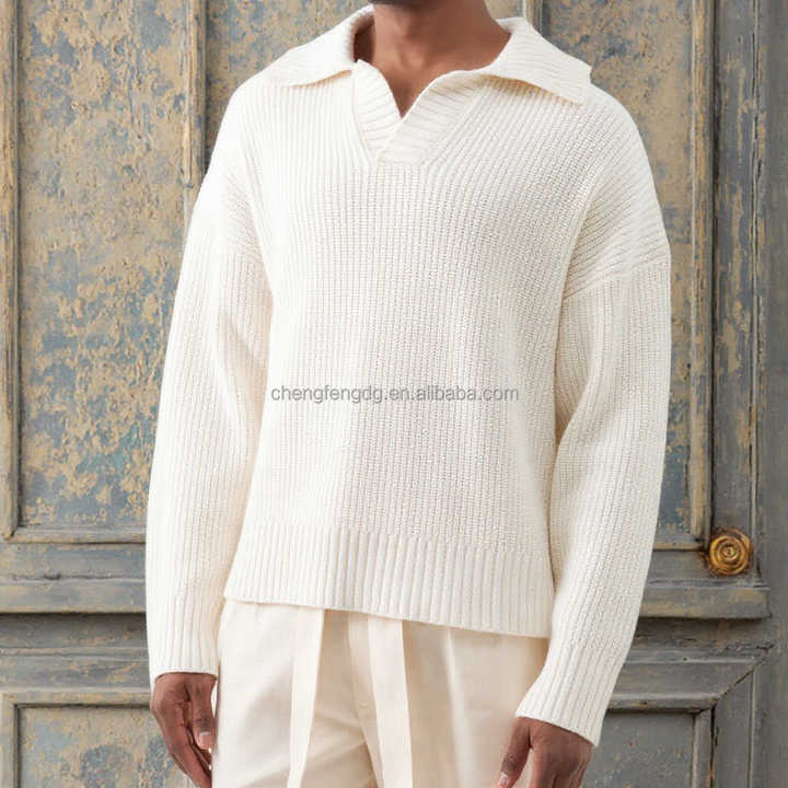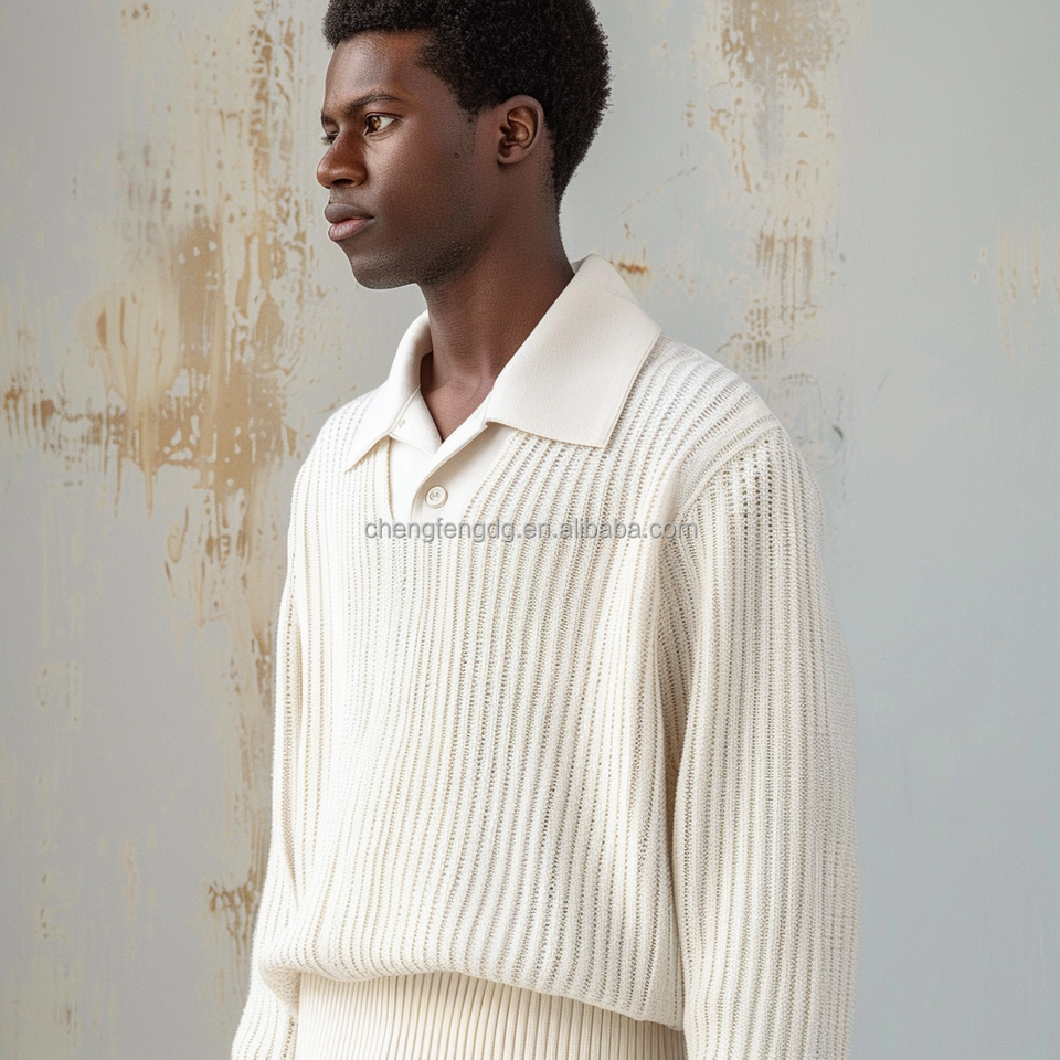 Polo Maglione da Uomo a Manica Lunga in Misto Cotone e Lana con Logo Personalizzato ODM per la Primavera Vendita all'Ingrosso dalla Fabbrica