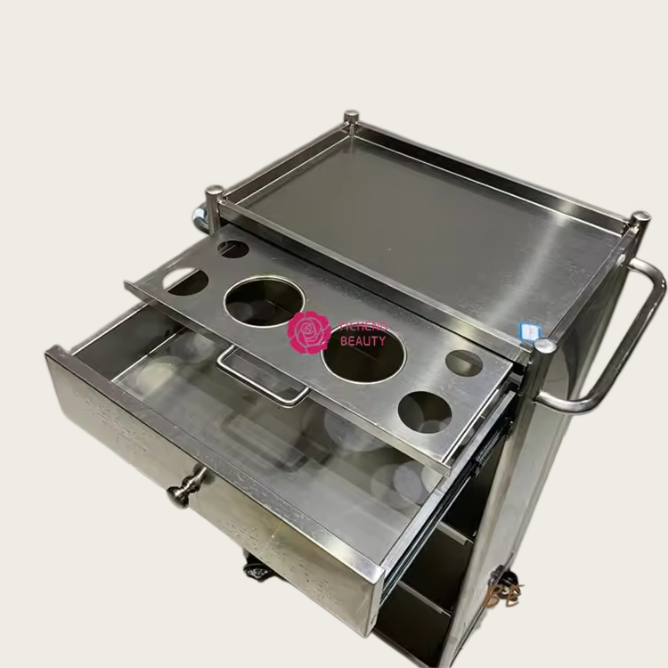 Commercio all'ingrosso della fabbrica di Design moderno in acciaio inox parrucchiera barbiere carrello per salone di bellezza per uso ospedaliero e officina