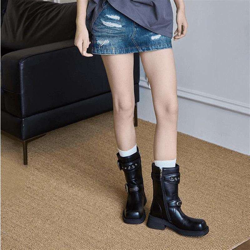 Stivali da Motociclista da Donna con Tacco Spesso e Colore Lucido, Nuova Collezione 2024, Vendita all'Ingrosso