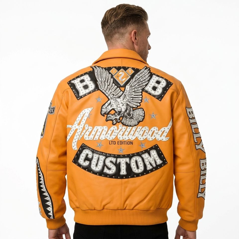 Giacca Varsity in Pelle con Applicazioni Ricamate OEM, Personalizzabile, 100% Pelle di Agnello, Stile Hip Hop Streetwear per Uomo