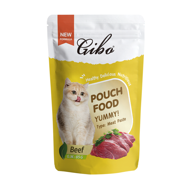 Cibo Umido per Gatti al Gusto di Manzo di Alta Qualità OEM, Snack per Gatti in Bustina, Produzione all'Ingrosso