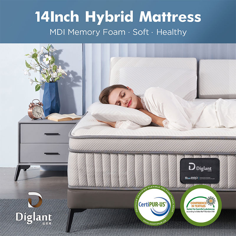 Materasso Popolare da Ingrosso Fabbrica per Hotel a 5 Stelle, Materasso Ibrido da 14 Pollici con Molle Insacchettate e Memory Foam