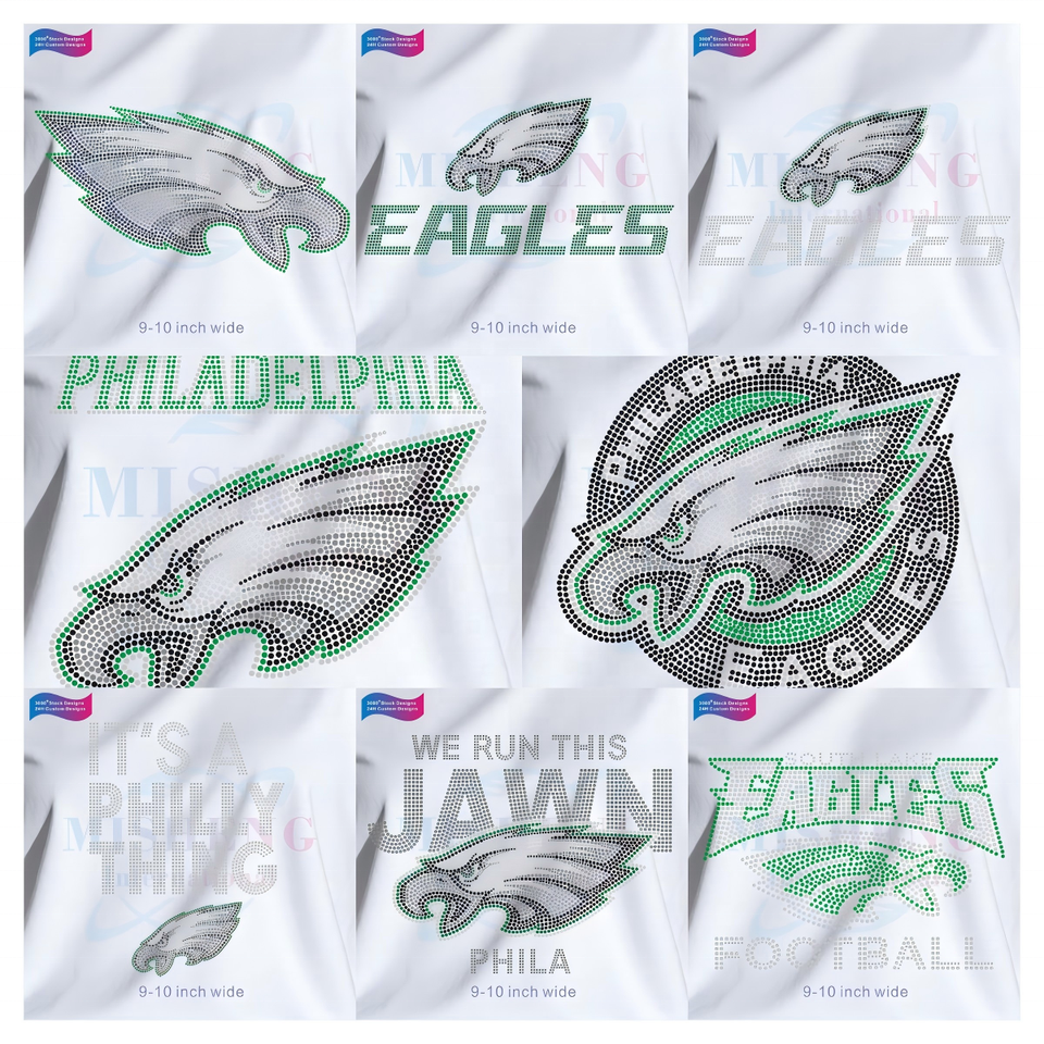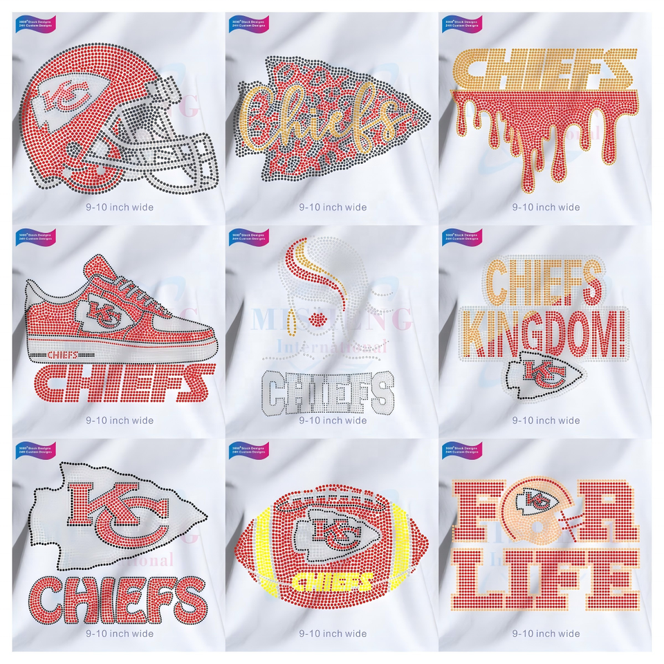 Factory Wholesale Price Sports Team Logo Rhinestone Heat Transfer NFL Football Team Name Custom Logo Rhinestone Transfer