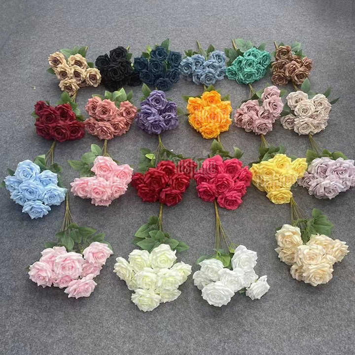 Factory Wholesale Rose Flowers Velvet Silk Artificial 7 Head Roses Bouquet