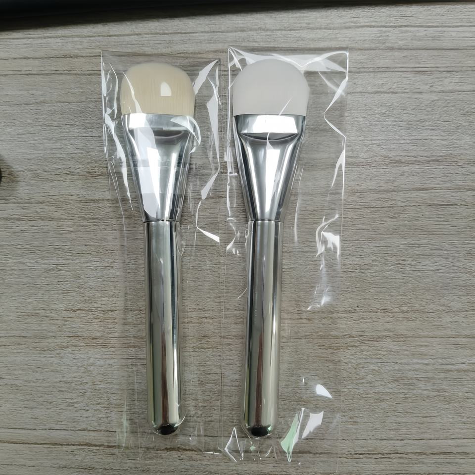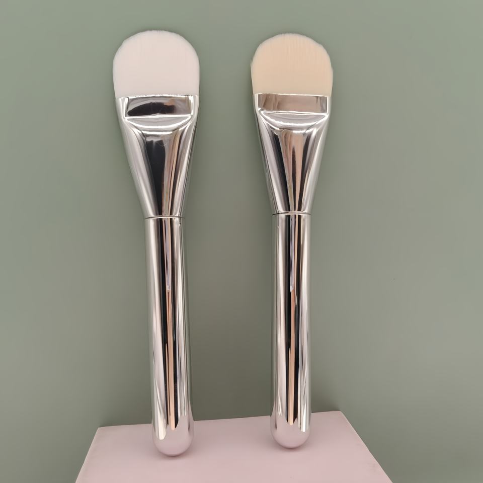 Factory Wholesale Round Head Foundation Brushes Face Silver Tongue-Shaped Contouring Makeup Brush for Liquids Creams