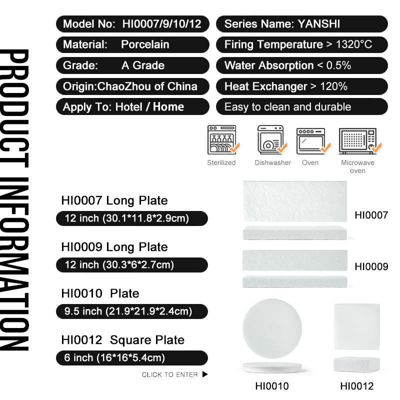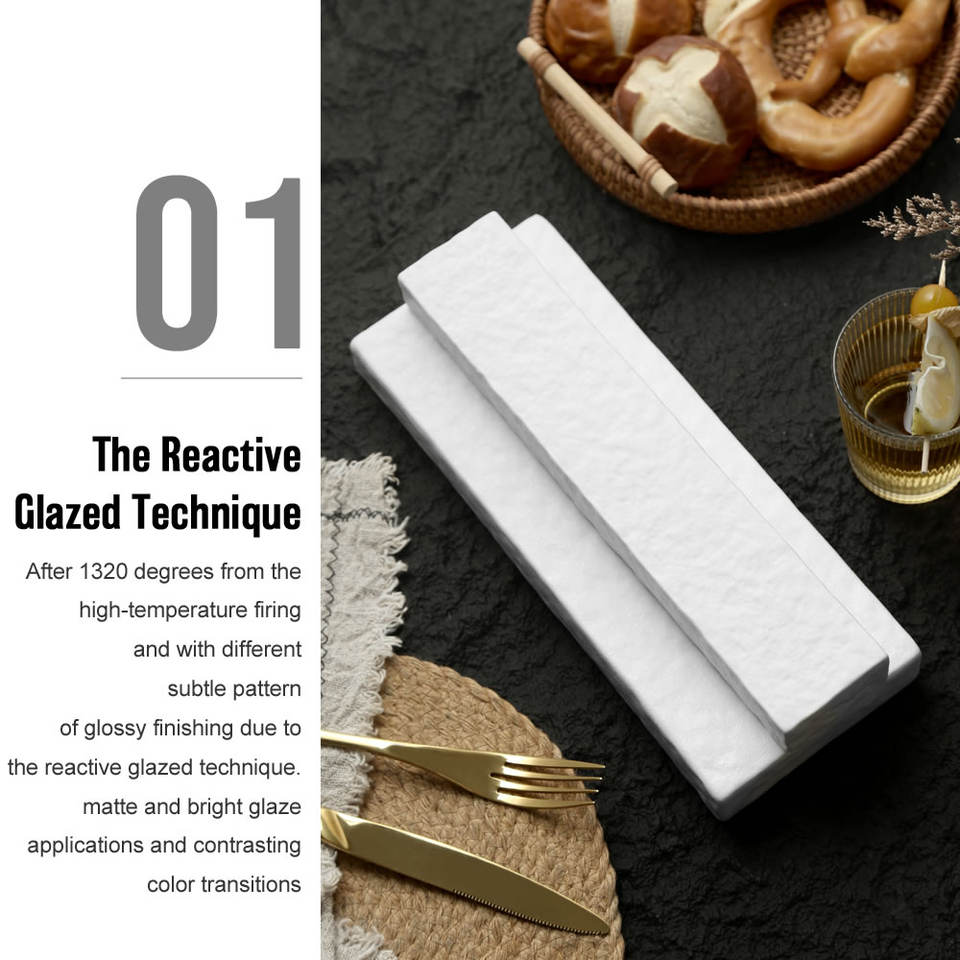 Set di Piatti e Vassoi Quadrati in Ceramica Porcellanata Bianca Opaca Effetto Pietra per Ristoranti, Vendita all'Ingrosso