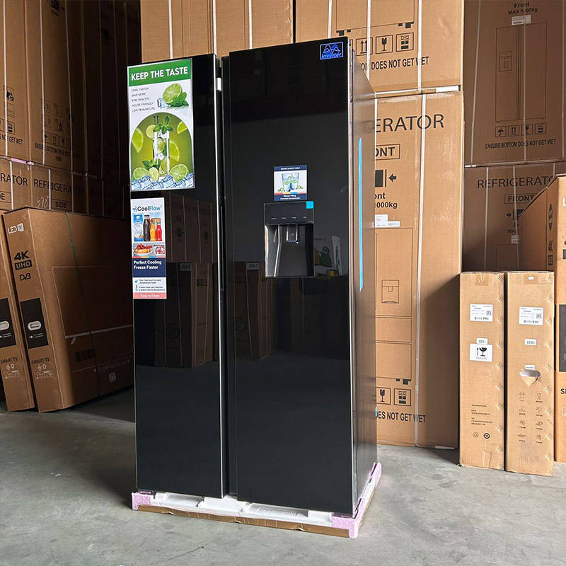 Commercio all'ingrosso della fabbrica porte di vetro temperato fianco a fianco di grande capacità porte doppie con distributore di acqua frigo frigorifero