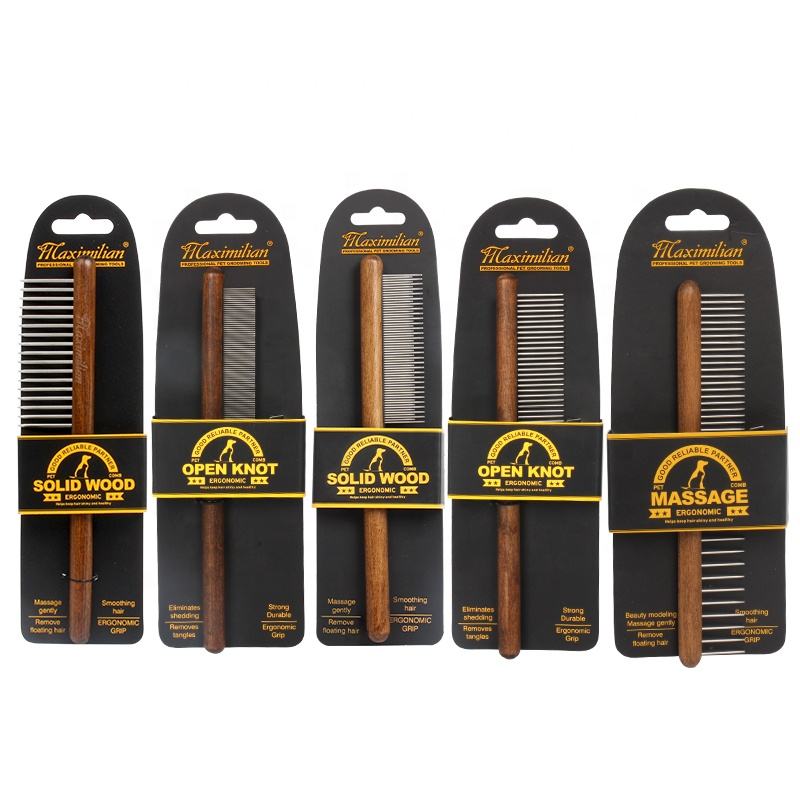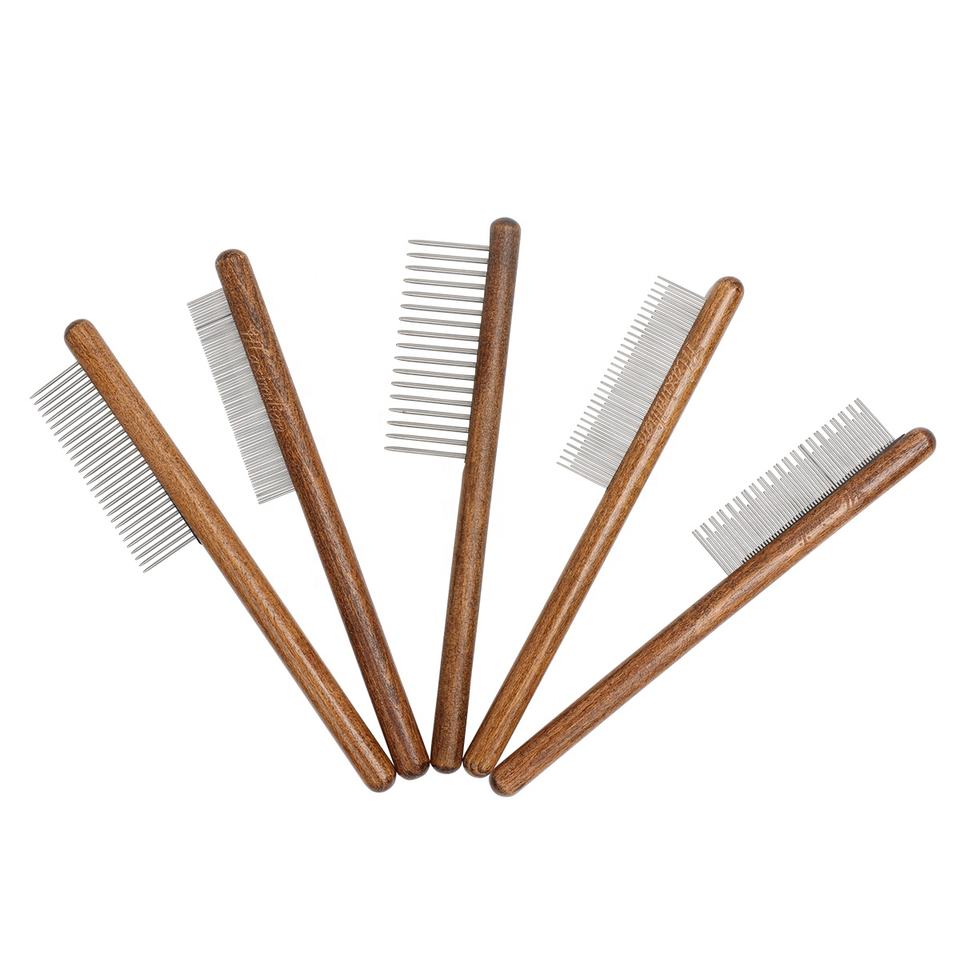 Factory Wholesale Upscale Six Style Wooden Handle Pet Flea Needle Comb Cat Dog Grooming Hair Comb