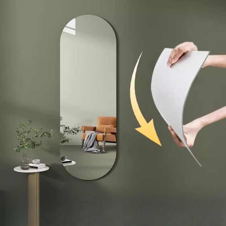Commercio all'ingrosso della fabbrica ampiamente usato flessibile acrilico infrangibile plastica morbida autoadesivo specchio in parete decorativo colla specchio