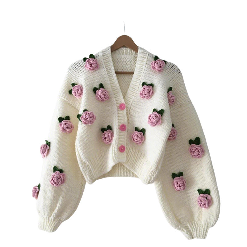 Maglione Cardigan donna lavorato a mano all'uncinetto lavorato a maglia floreale,