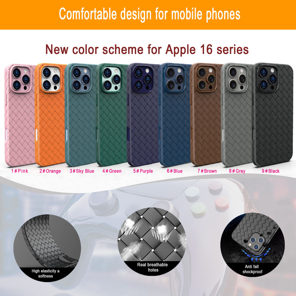 Custodia per telefono in TPU intrecciato con texture, all'ingrosso dalla fabbrica, per iPhone 11 12 13 14 16, con protezione e raffreddamento per gaming