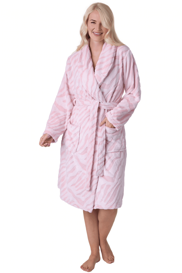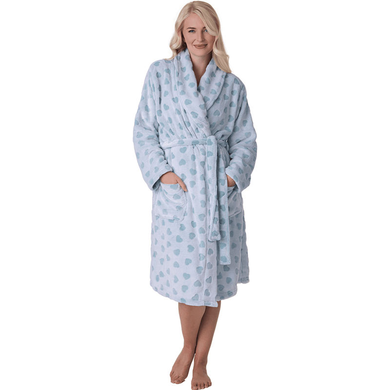 Factory Women's Luxurious Printed Fleece Long Sleeve Breathable Quick Dry Winter Bathrobe with Shawl Collar and Belt
