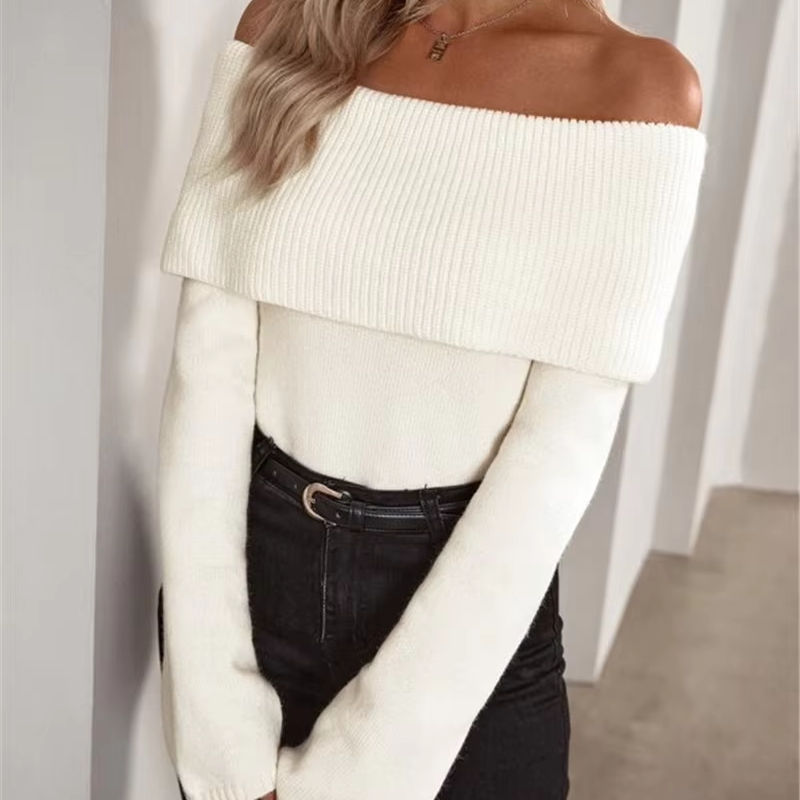 Maglione da donna Slim Fit con risvolto monospalla di alta qualità in tinta unita Pullover bianco di base Sexy maglione lavorato a maglia da donna