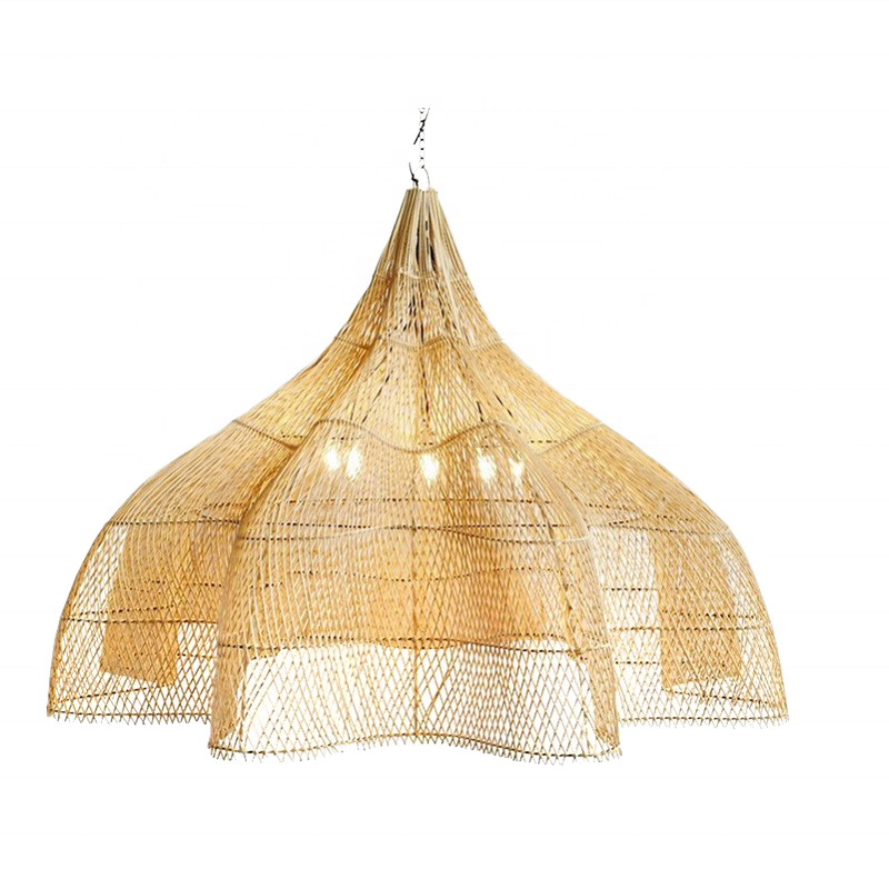 Lampadario in Rattan Intrecciato Artigianale, Paralume in Vimini e Bambù per Lampada a Sospensione Grande