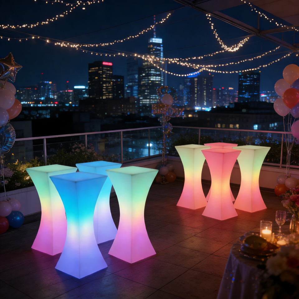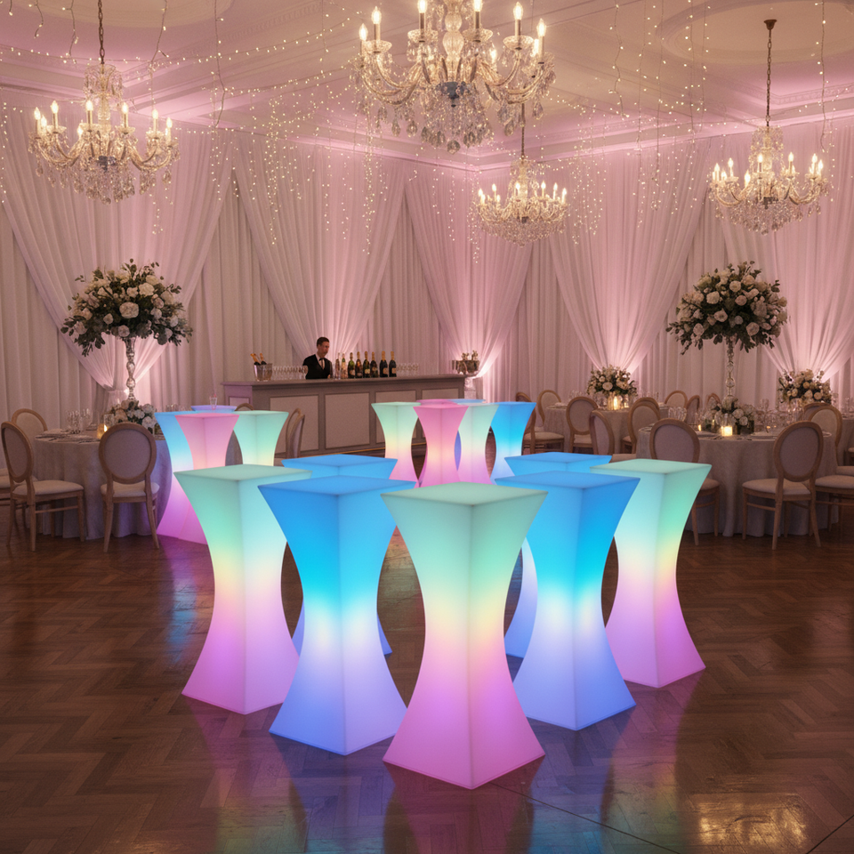 Tavolo da Cocktail LED a 16 Colori IP65 Prodotto in Fabbrica, Tavolo da Bar LED Lucido per Eventi/Feste/Giardino, Uso Esterno per Locali Notturni e Lounge