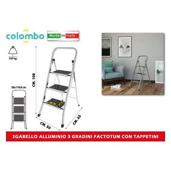 Sgabello ottomano in alluminio a 3 livelli Factotum con tappetini, sgabello di qualità premium per comfort e supporto