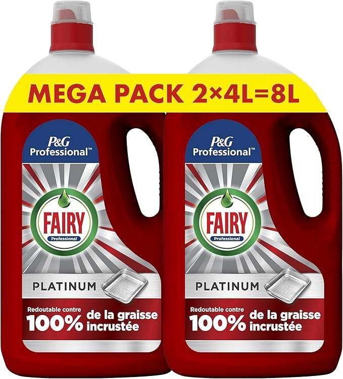 Detersivo per Piatti Fairy Professional Platinum 8L (2 x 4L) Formula Professionale per Uso in Cucine Commerciali