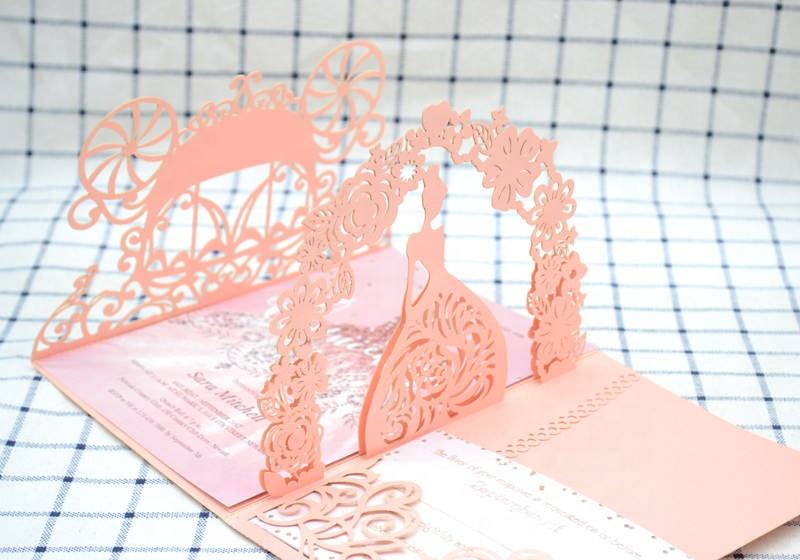 Fairytale Carriage Quinceanera 3d Pop up Laser Cut Blush pink Girl Invitations
