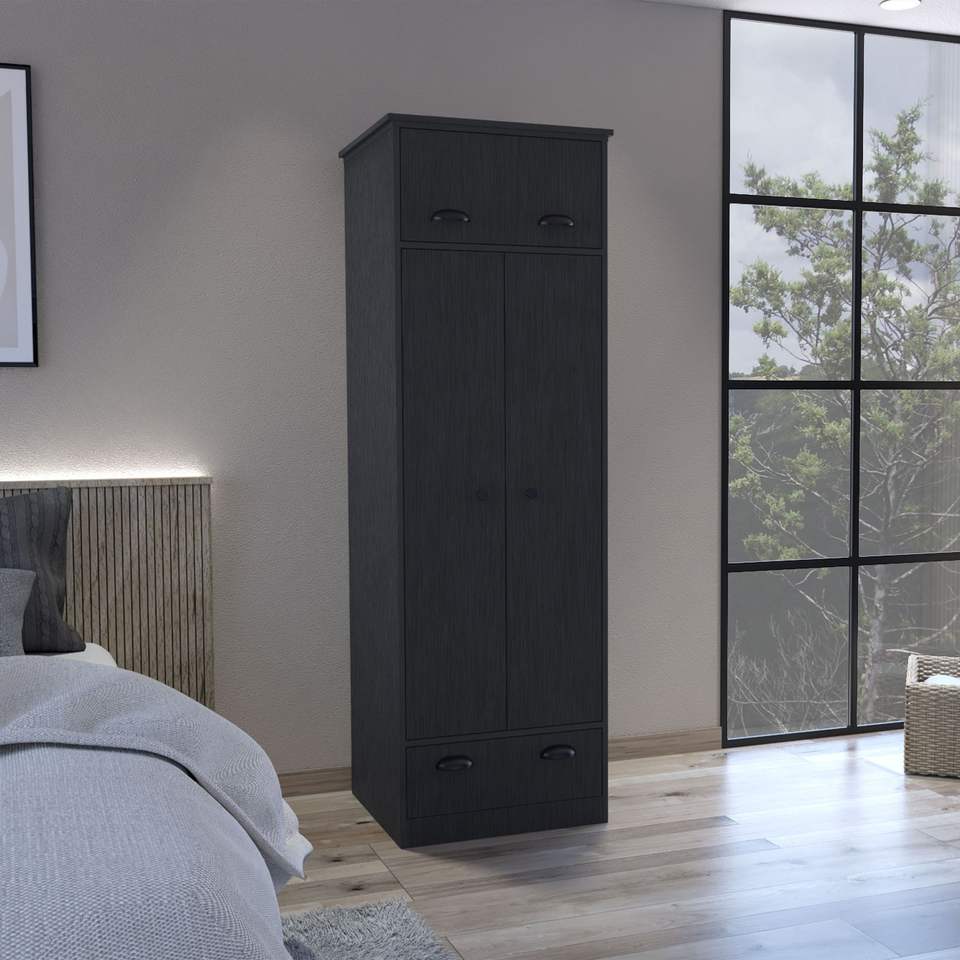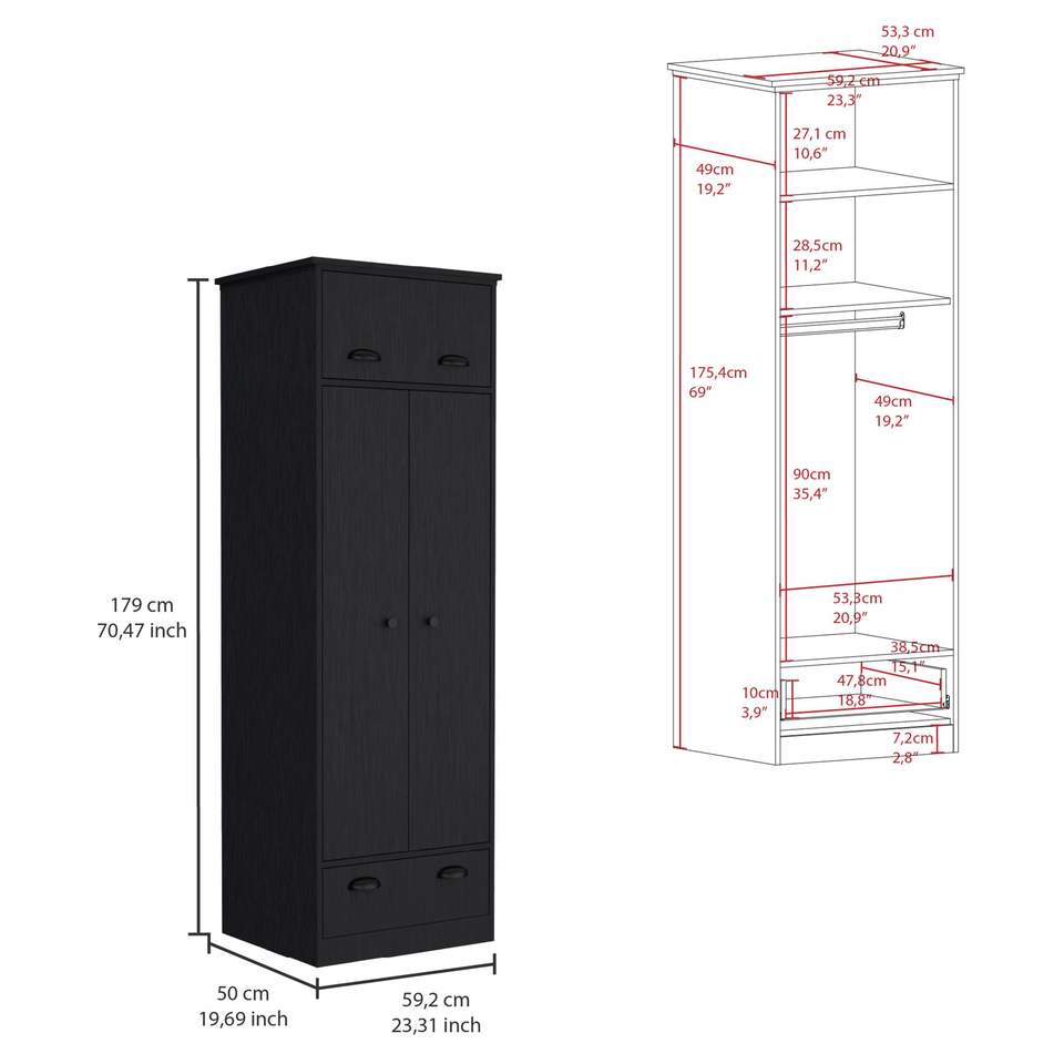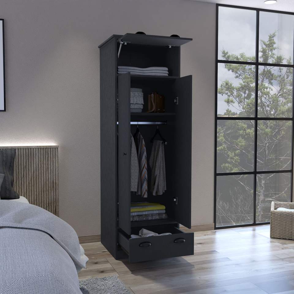 Falkland Black Armoire with 1 Drawer and 1 Hinged Drawer with Handles Wardrobe Product