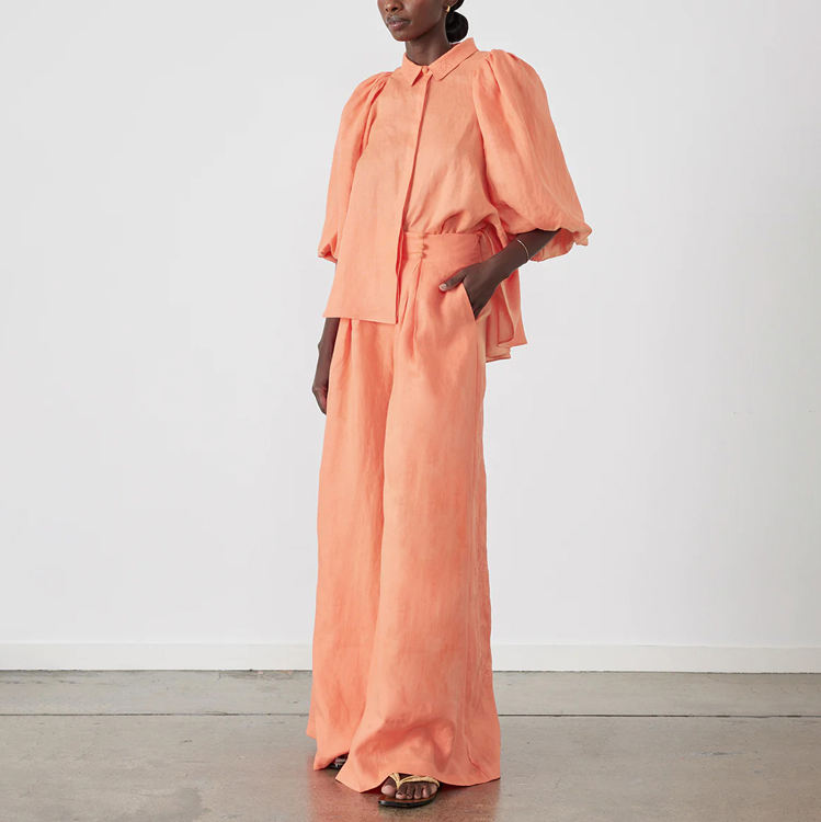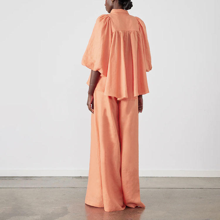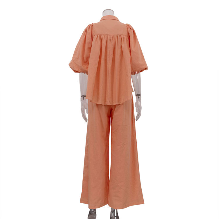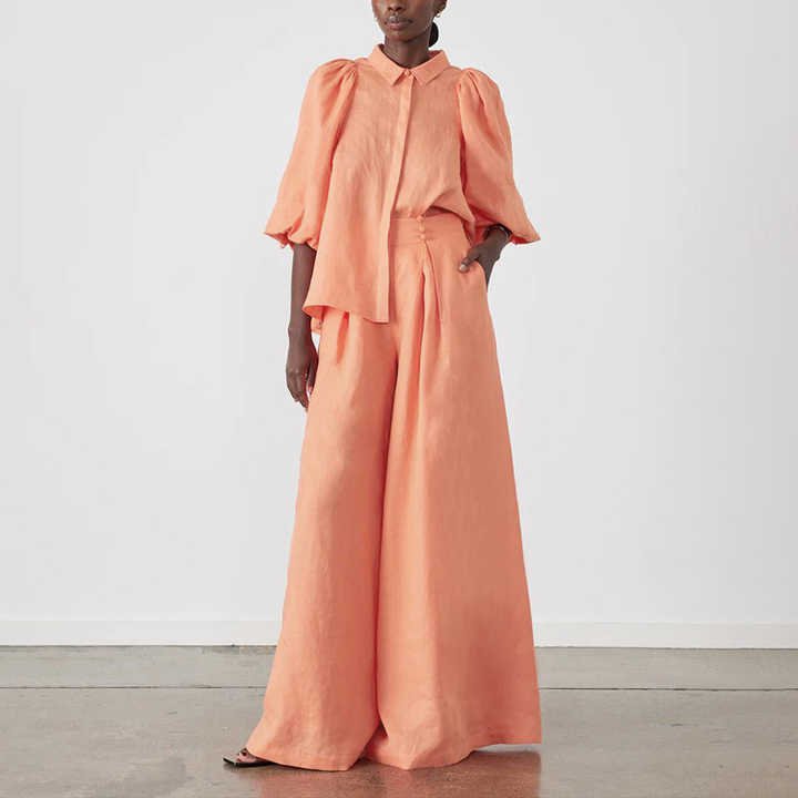 Pantaloni a maniche a sbuffo e pantaloni larghi in cotone alla moda autunnale Set di due pezzi completi da donna Combinaison Femme Pantalon