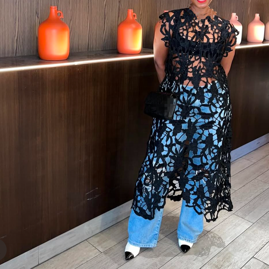 Fall Summer Trendy Unique Sexy Sleeveless Long Tops Loose See Through Shirts Dress Women'S Tops Fashionable