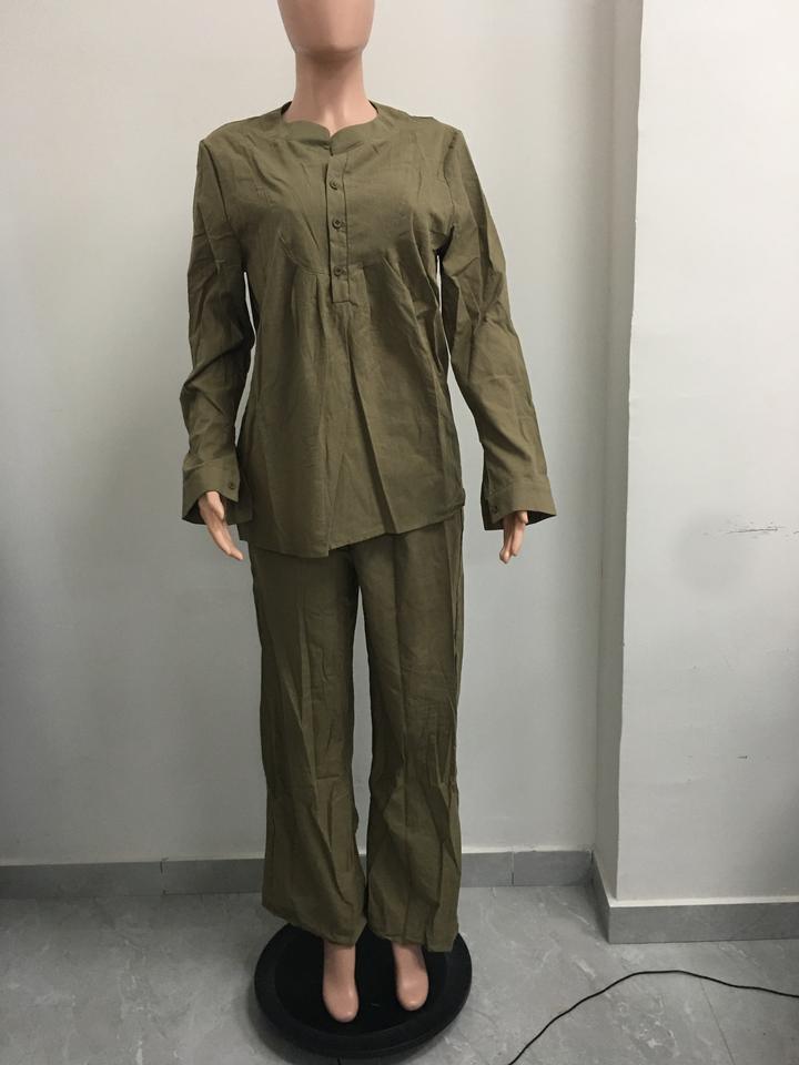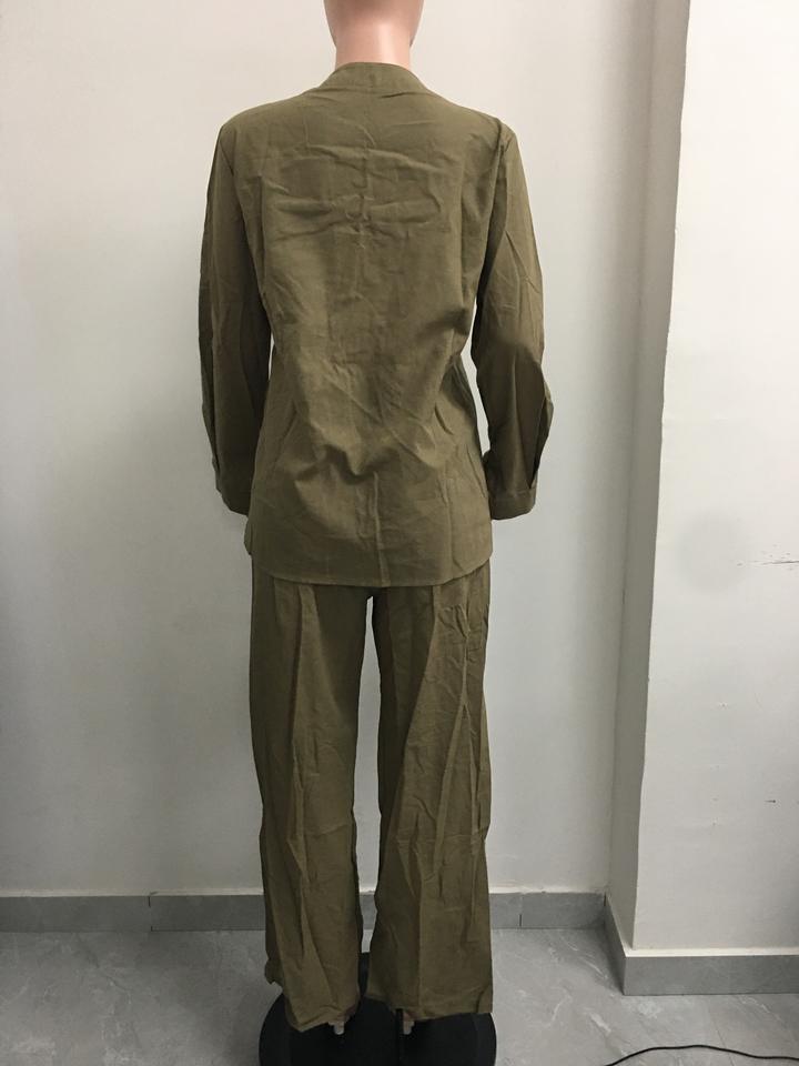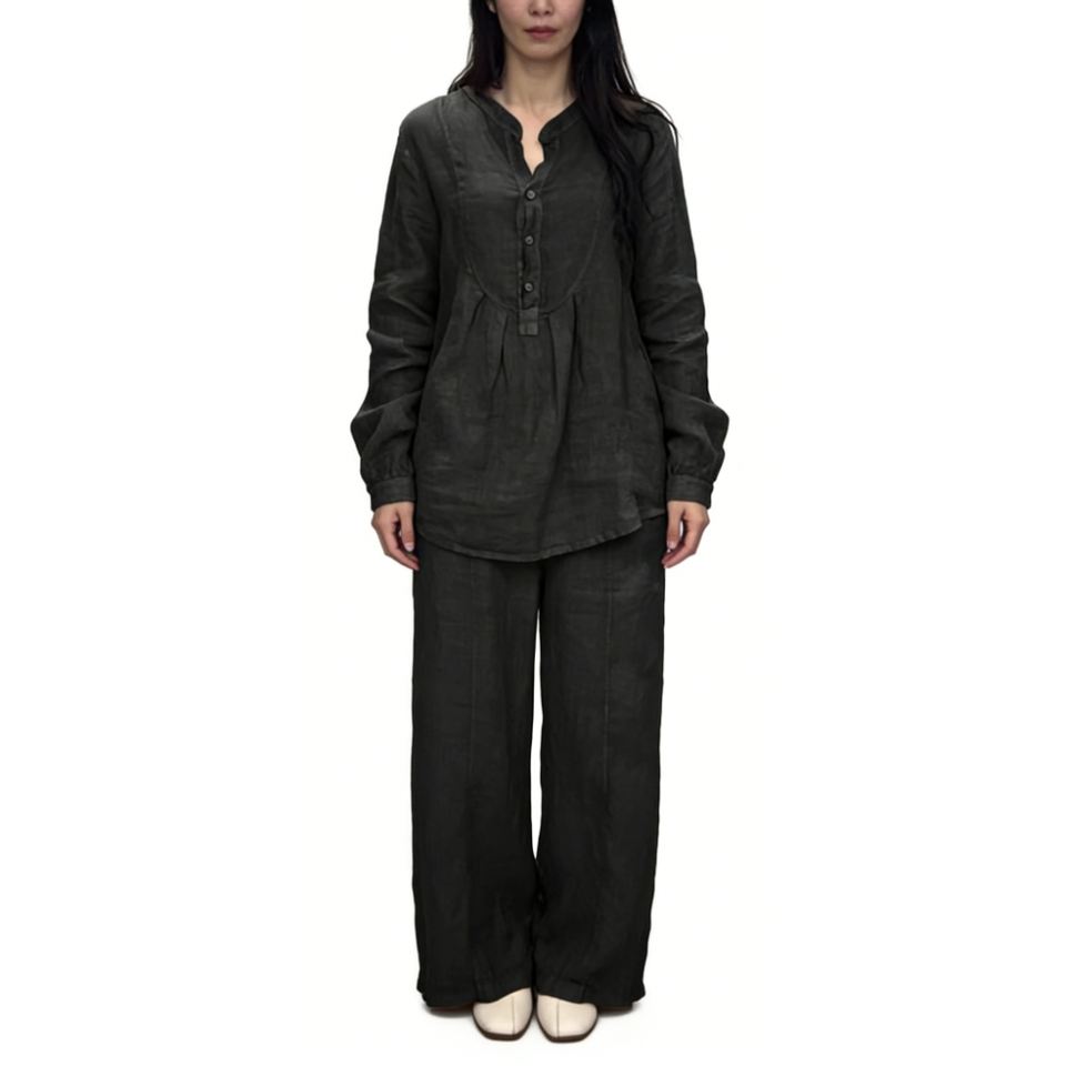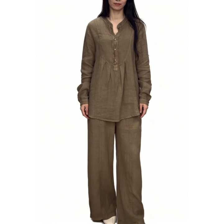 Completo Estivo da Donna in Cotone-Lino: Top a Maniche Lunghe e Pantaloni a Gamba Larga con Coulisse - Set 2 Pezzi Sehe Fashion