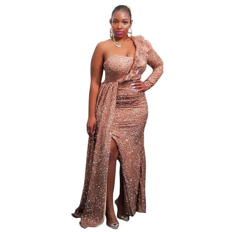 Fall and Winter African Dresses New Single Shoulder Beaded Women's Long Dresses Evening Gowns Sehe Fashion
