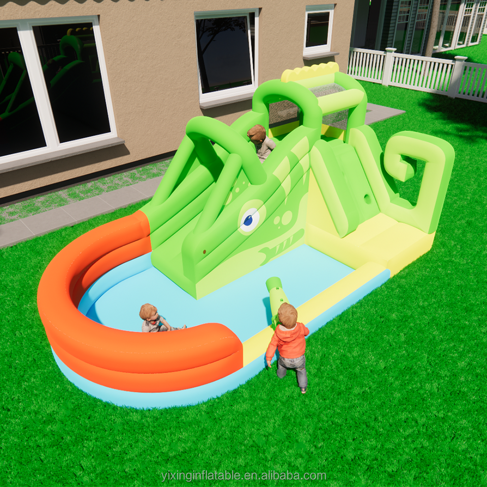 Famiglia cortile divertente con scivolo gonfiabile ad acqua casa di rimbalzo lungo scivolo e parete di arrampicata per il cortile di gioco