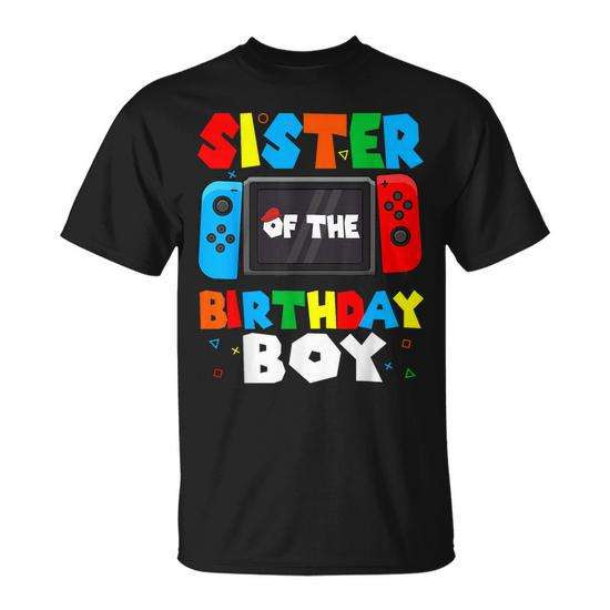 T-shirt coordinata per la famiglia a tema gaming per il compleanno di un fratello, con design della sorella per un'occasione divertente e festosa