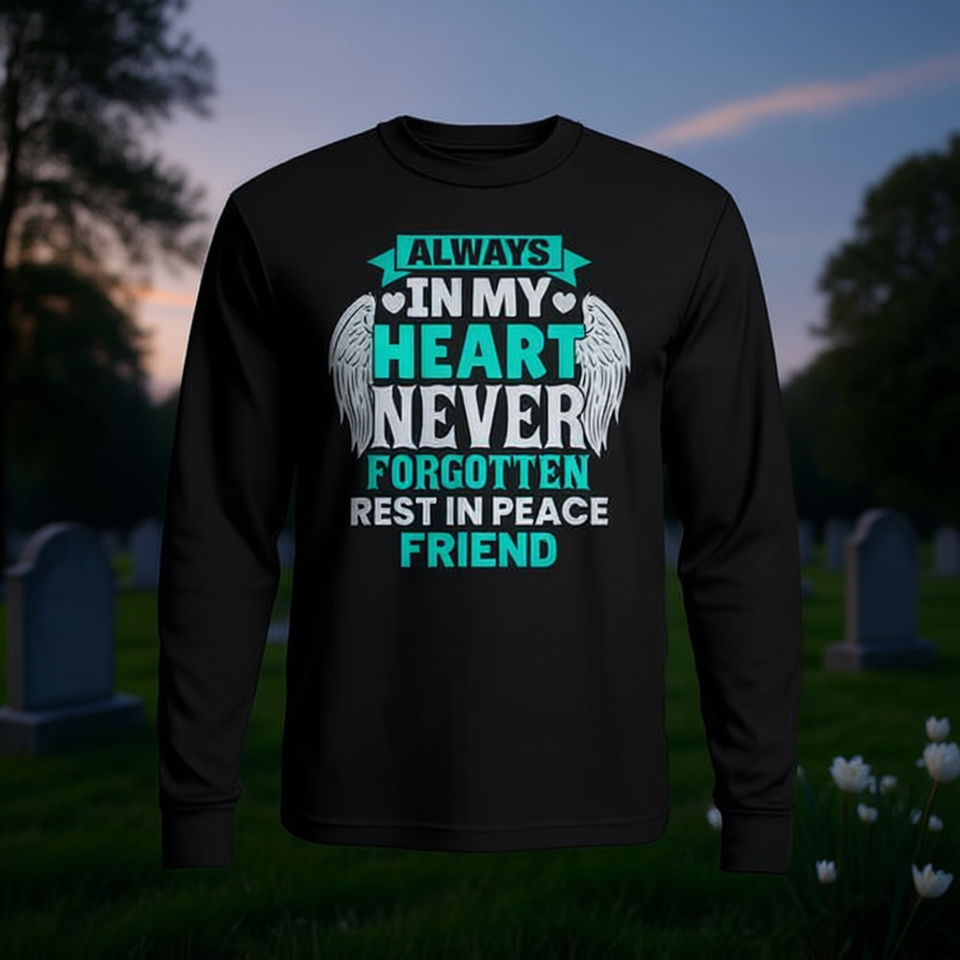 Maglietta a Maniche Lunghe Commemorativa per Membro della Famiglia con Design 'Amico nel Cielo' - per Articoli Promozionali