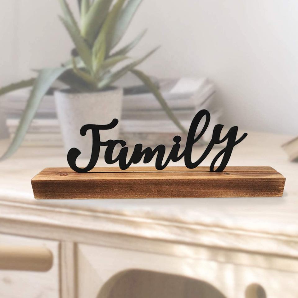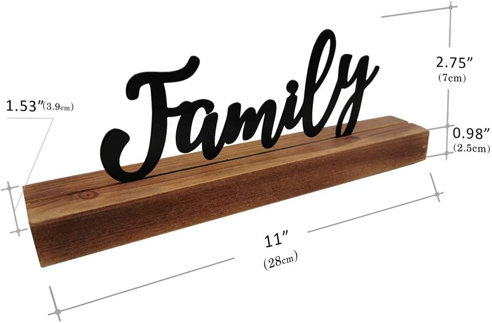 Nome del prodotto:Insegna da Tavolo in Metallo con Parole Familiari e Base in Legno