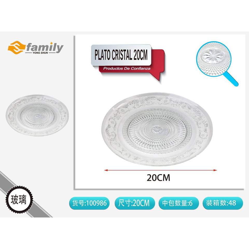 Piatto per Frutta in Vetro Family YONG SHUN, 20 Cm, Rotondo, Inciso, Lavabile in Lavastoviglie, per Feste