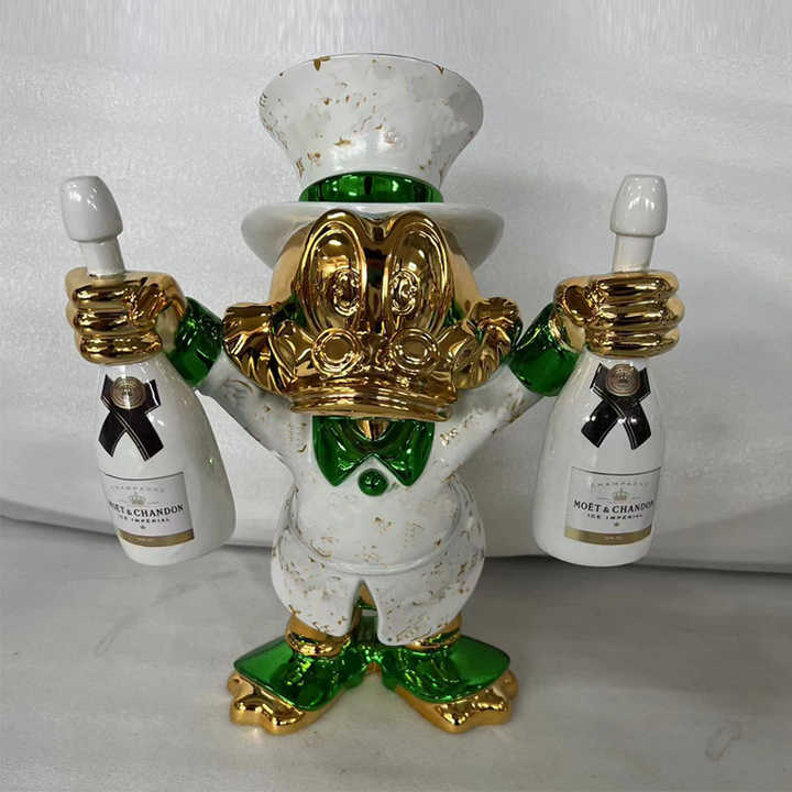 Famosa Statua di Papero dei Cartoni Animati Placcata in Oro Scultura a Forma di Bottiglia di Champagne in Resina per Decorazione Artistica Pop e da Galleria