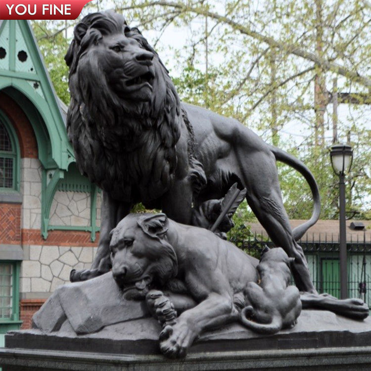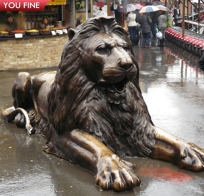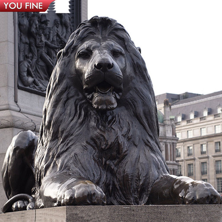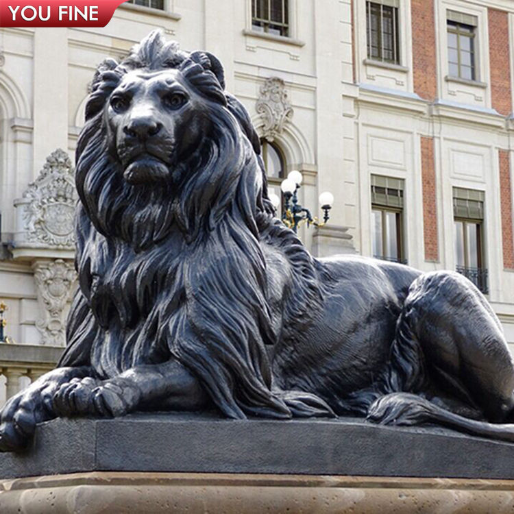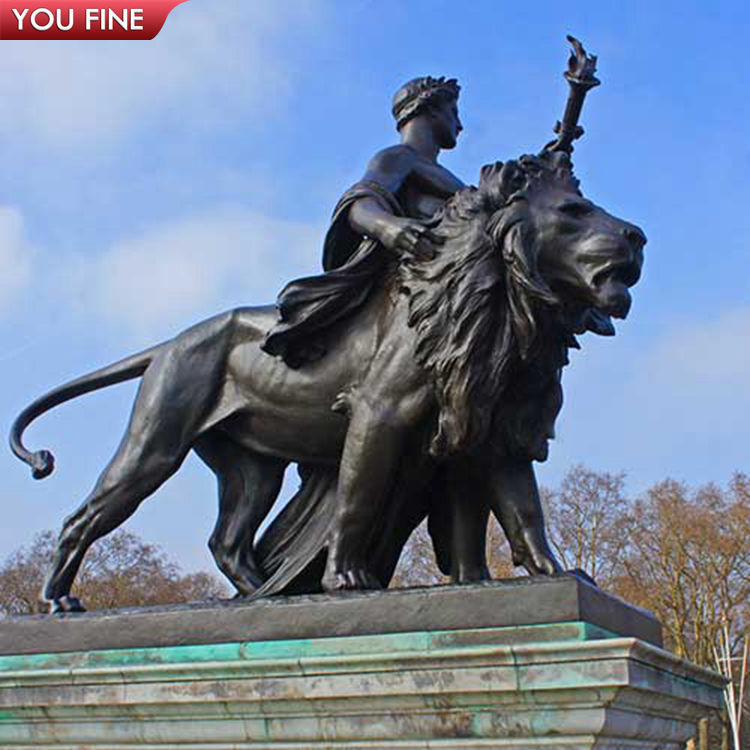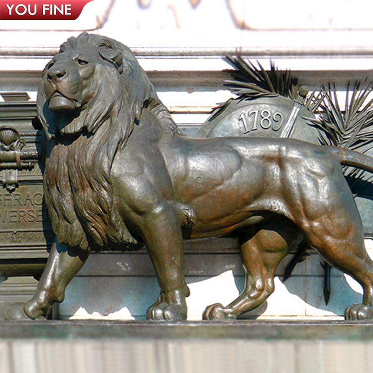 Famosa Scultura in Metallo di Leone in Piedi con Torcia in Bronzo