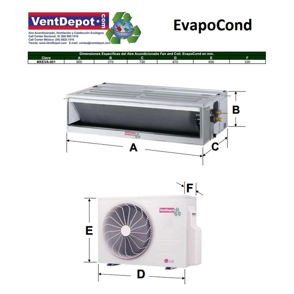 Condizionatore d'Aria con Ventilatore e Serpentina per Uffici, MXEVA-001, 24000BTU, 2.