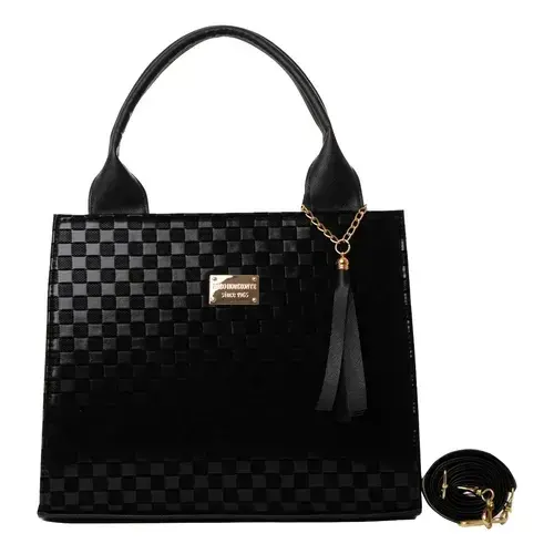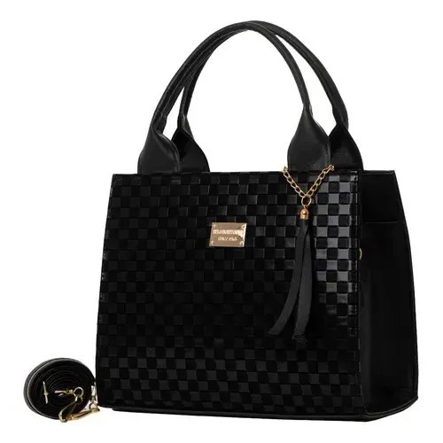 Fana Alejandra Women's Classic Black Tote Bag M3751 Checkered Leather Three Straps Casual Design Large Capacity Daily Use