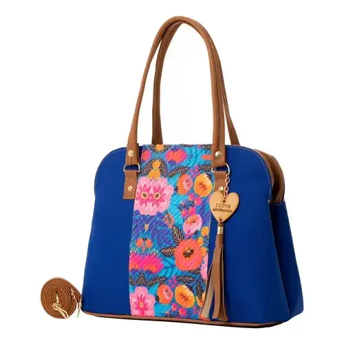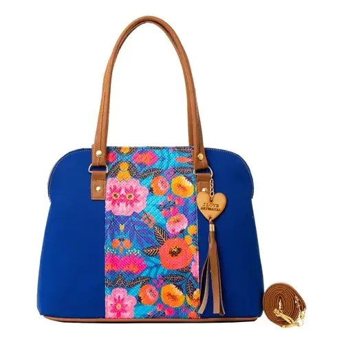 Fana Ember Royal Blue Jute Beach Bag for Women Medium Size Eco-Friendly Heat Transfer Printed Screen Pattern for Daily Use Gifts